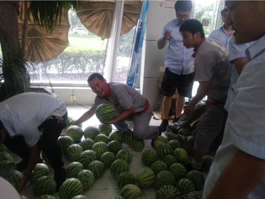 當(dāng)天,隨著鎮(zhèn)工會運(yùn)輸車的開進(jìn),企業(yè)各部門組織員工積極幫忙搬運(yùn),各個臉上洋溢著喜悅,大家一起幫忙將西瓜、飲品、防暑降溫等用品送達(dá)到員工手中,這意味著將公司的這份關(guān)懷傳遞到了員工們的心中,給炎炎夏日帶來了一縷清涼。
